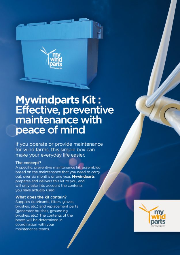 Wind farms : For effective preventive maintenance, Mywindparts offers an innovative concept: a kit to discover. An innovative concept including all your maintenance teams need, easy to transport and to stock. At the end, Mwindparts only invoices what you use. More information ? Mywindparts processes all your requests within 48 hours. Mywindparts in Amsterdam, Wind…