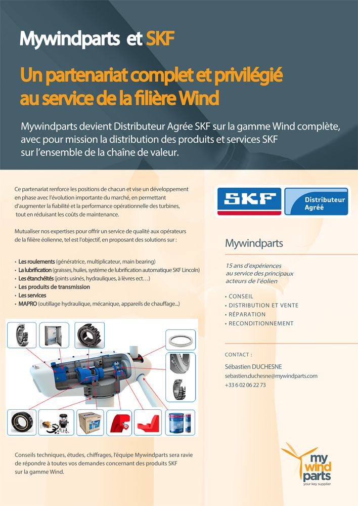 Mywindparts devient Distributeur Agrée SKF sur la gamme Wind complète, avec pour mission la distribution des produits et services SKF sur l’ensemble de la chaîne de valeur.